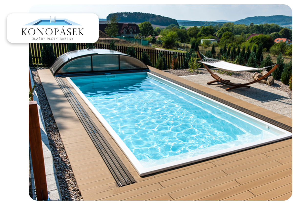 Ke každému bazénu dodáme jakékoliv zastřešení nebo pojízdnou terasu – navrhneme řešení přesně pro váš prostor.